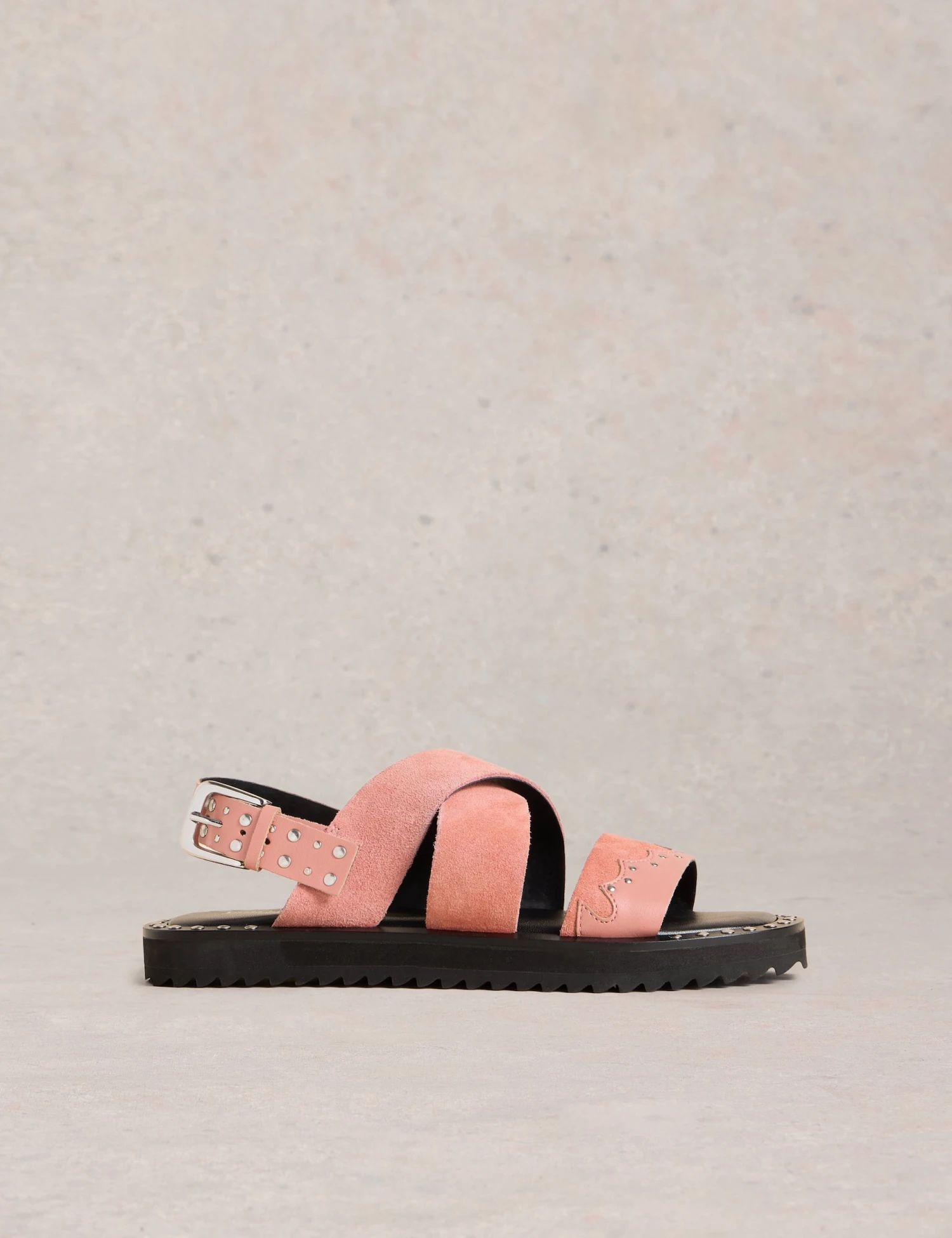 Bring a boho-inspired finish to your ensemble with these flat suede sandals from White Stuff. They feature a comfortable footbed sole and a breathable open toe. The cross-over upper is decorated with a Western-style pattern and studding for a statement look. An adjustable buckle at the ankle completes this design.