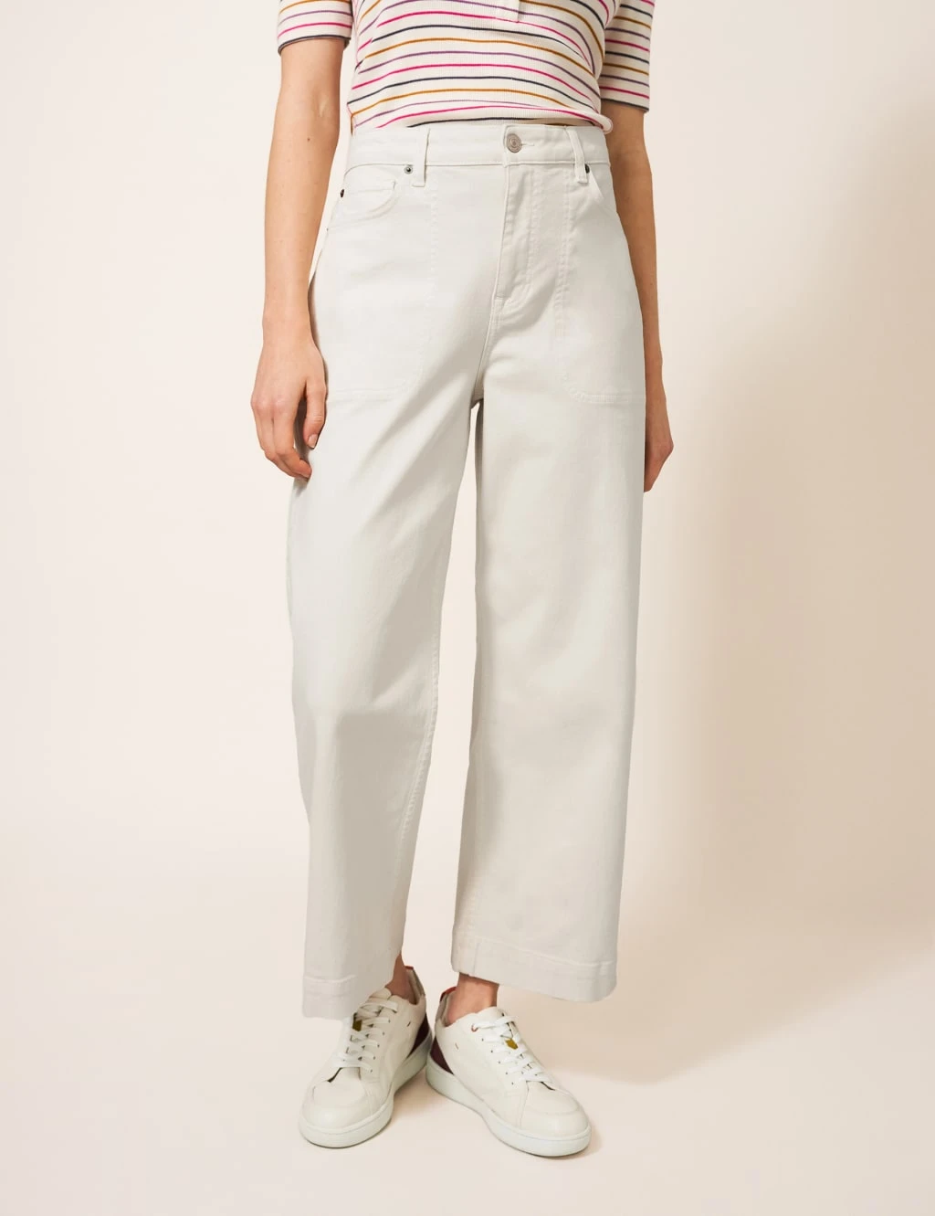 Upgrade your warm-weather denim collection with these cropped denim jeans from White Stuff. They’re cut in a cool wide-leg fit with a flattering mid-rise waist and five-pocket styling. The zip and button closure provides a classic finish.