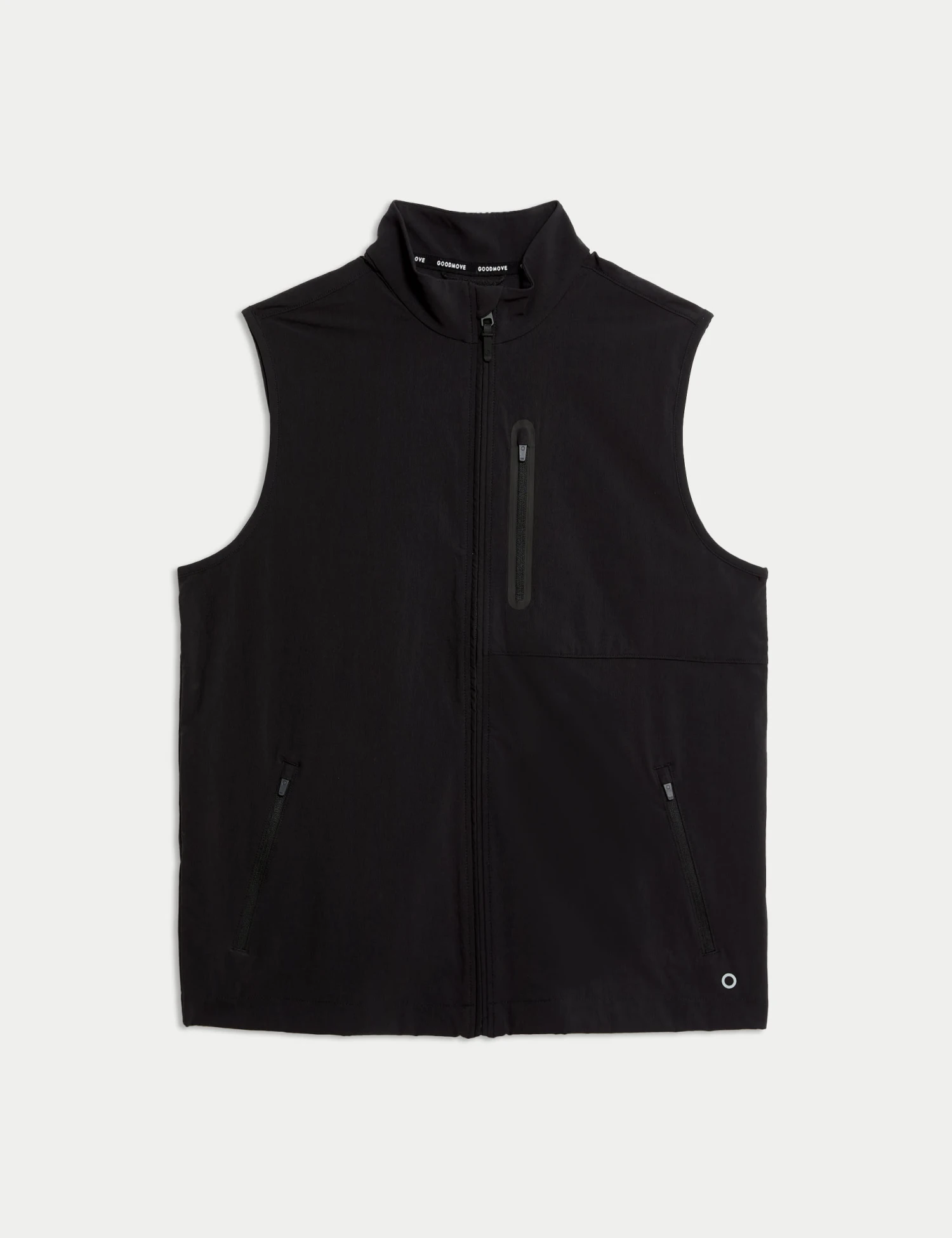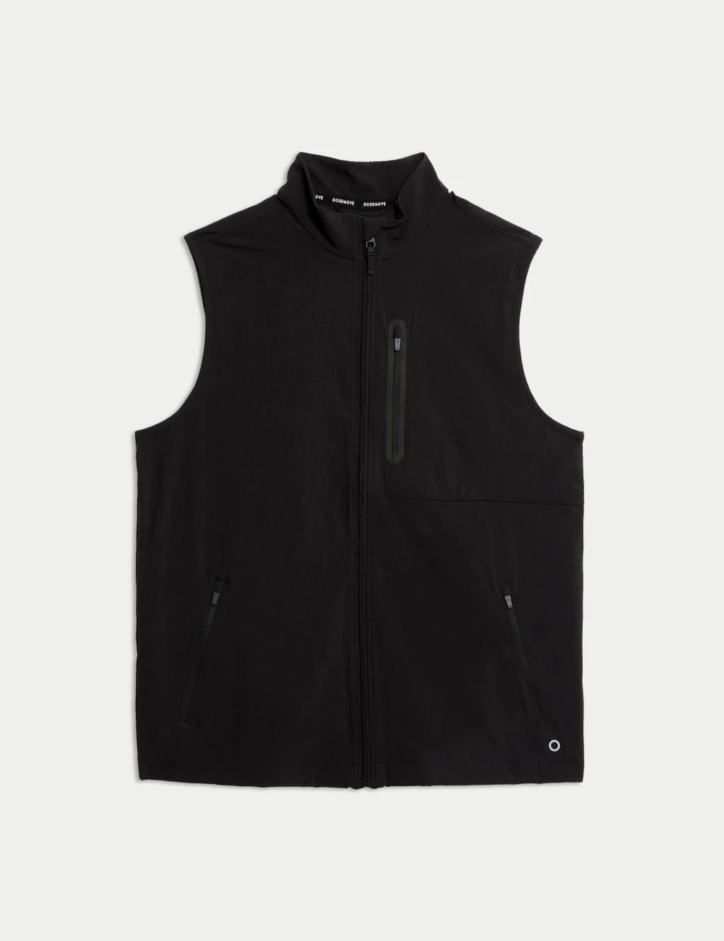Slip into something comfortable after your workout with this lightweight gilet from our Goodmove collection. It’s made to a regular fit with added stretch for easy movement. The lightly padded body locks in warmth, while the water-repellent finish ensures you stay dry in a shower. A crew neck gives it a laid-back look, while a zipped pocket keeps essentials safe.