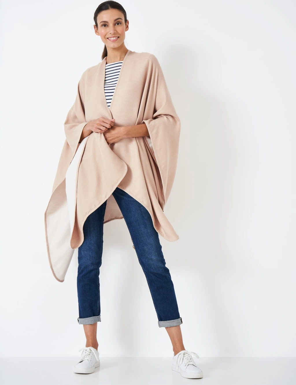 This elegant shawl from Crew Clothing is the perfect piece for layering. It’s crafted in a luxurious draped design that can be worn loose or cinched with a belt. The piece is reversible to give you two looks in one. A neat branded tab at the hem adds a polished finish.