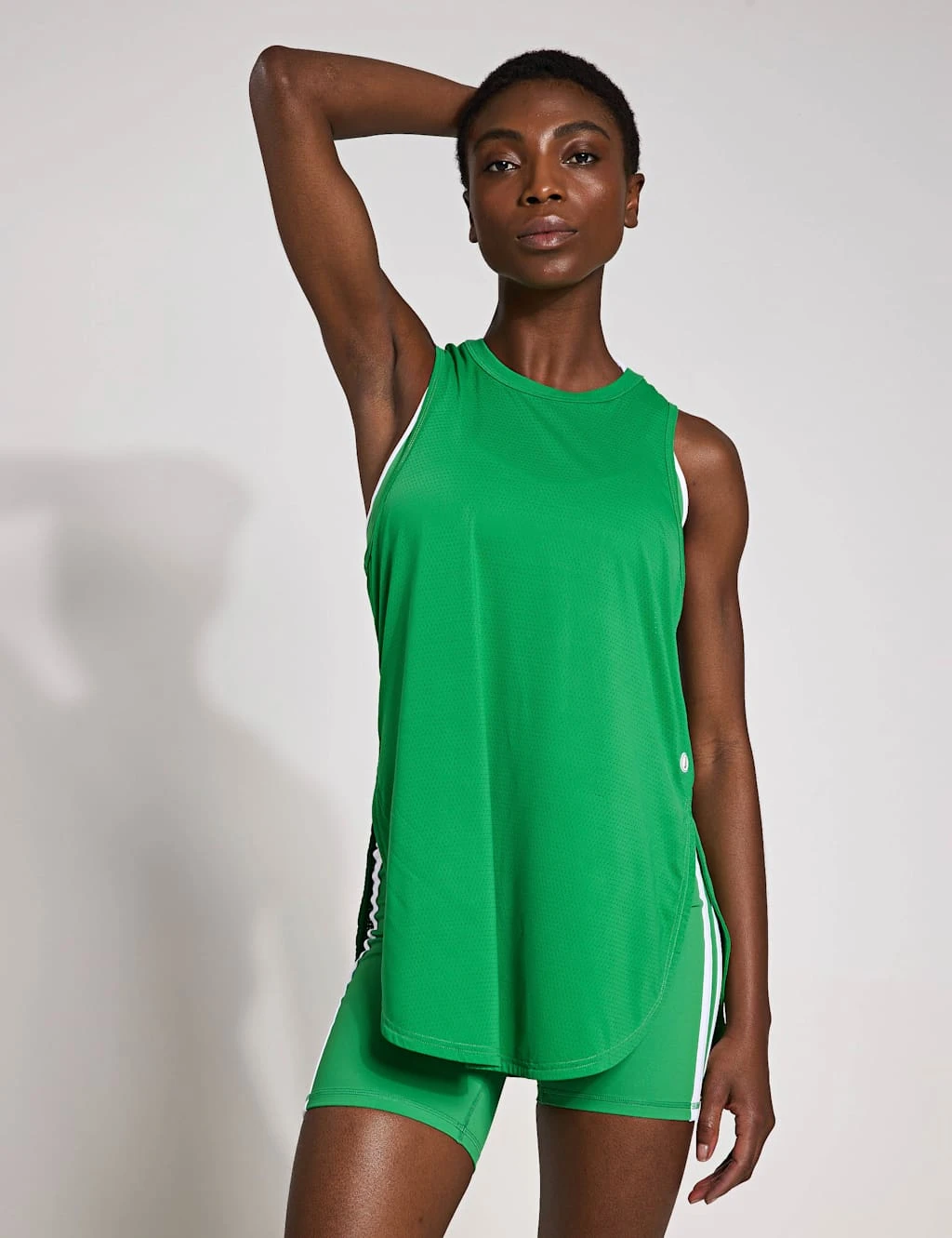 This longline vest top from Lilybod gives you good coverage while training. It’s made in a regular fit, with a crew neckline and a cool racerback. The perforated fabric ensures an airy feel, while deep side splits allow you to move freely.
